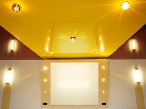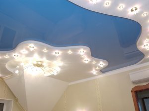 Натяжная потолочная конструкция представляет каркас, который крепится к стенам, к нему закрепляются натяжные полотна. Натяжные потолки имеют следующие преимущества: